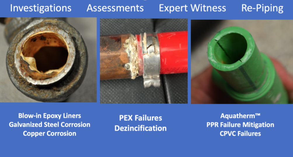 Plumbing failures, building / construction failures, HVAC, water intrusion, corrosion